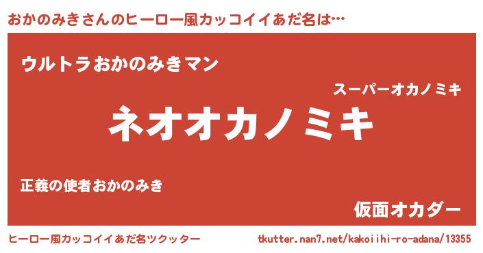 | 意味不明あだ名 | 『永久保存おかのみき』 |