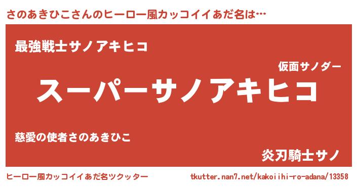 | 男性向けラノベタイトル風あだ名 | 『さのあきひこの憂鬱』 |