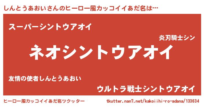 | 胡散臭い通販商品みたいなあだ名 | 『絶対に幸福をもたらす水素水…その名も「しんとうあおい」』 |