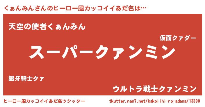 | 胡散臭い通販商品みたいなあだ名 | 『億万長者になれるブレスレット…その名も「くぁんみん」』 |