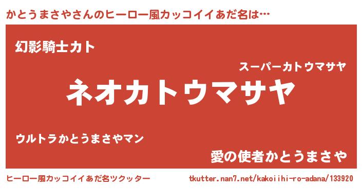 | 男性向けラノベタイトル風あだ名 | 『かとうまさや~年齢イコール彼女いない歴の魔法使い~』 |