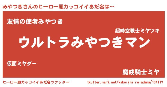 | 欧米人風あだ名 | 『みやつき・ステッグマイヤー』 |