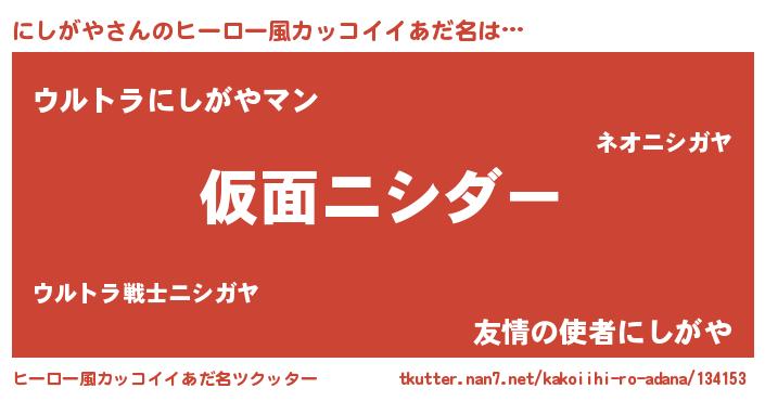 | 意味不明あだ名 | 『住所不定無職にしがや(13歳)』 |