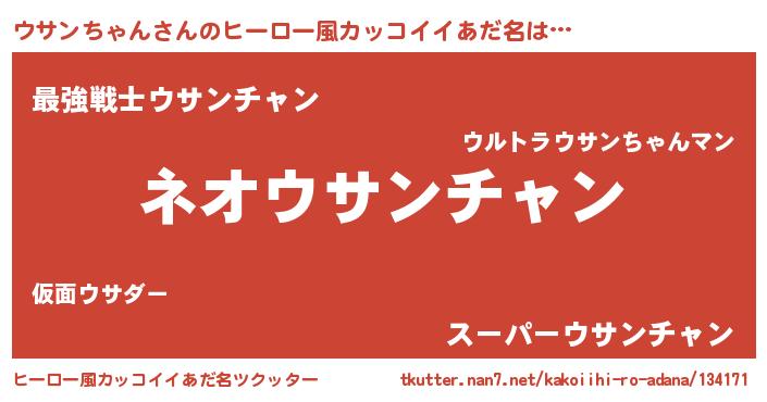| 男性向けラノベタイトル風あだ名 | 『ウサンちゃんという概念が存在しない退屈な世界 』 |