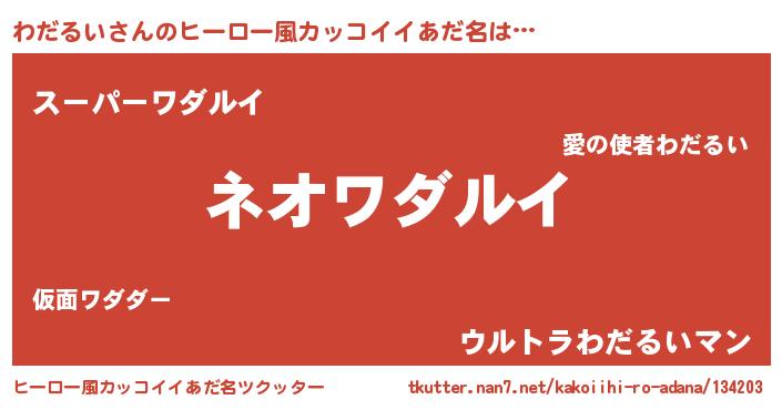 | 男性向けラノベタイトル風あだ名 | 『はたらくわだるいさま!』 |