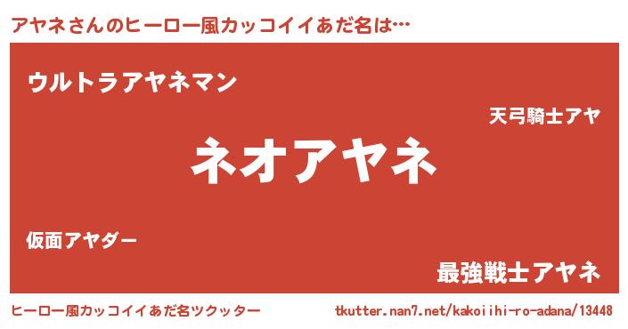| 男性向けラノベタイトル風あだ名 | 『アヤネという概念が存在しない退屈な世界 』 |