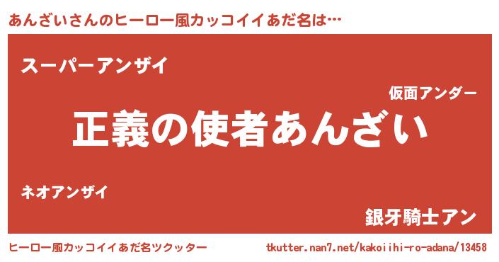 | 男性向けラノベタイトル風あだ名 | 『おまえをオタクにしてやるから、俺をあんざいにしてくれ! 』 |