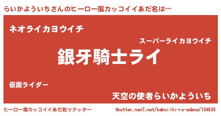 | 女子向けラノベタイトル風あだ名 | 『らいかよういちの卵を拾いまして』 |