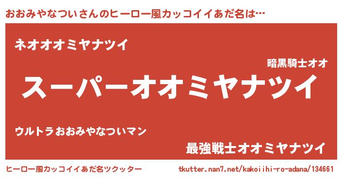 | 男性向けラノベタイトル風あだ名 | 『オオミヤナツイアートオンライン』 |