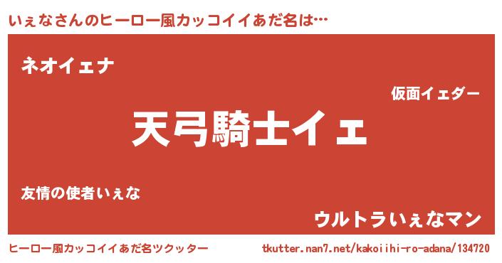 | 男性向けラノベタイトル風あだ名 | 『いぇなの嫁は女の子じゃないと思った?』 |