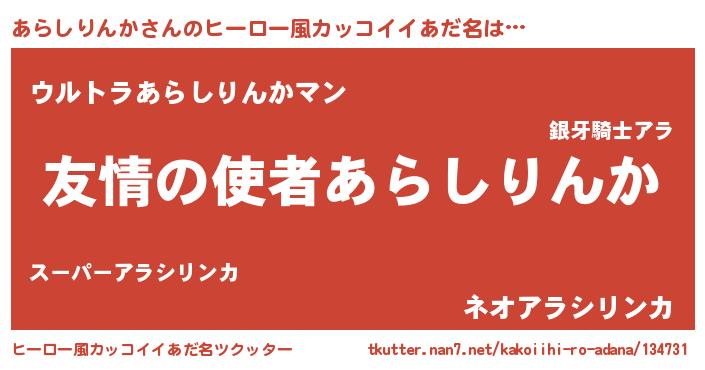 | 男性向けラノベタイトル風あだ名 | 『おまえをオタクにしてやるから、俺をあらしりんかにしてくれ! 』 |