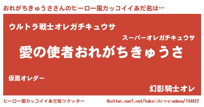 | 男性向けラノベタイトル風あだ名 | 『おまえをオタクにしてやるから、俺をおれがちきゅうさにしてくれ! 』 |