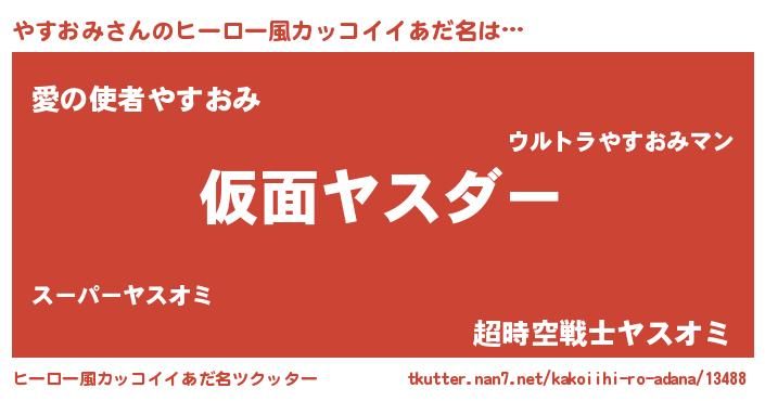 | 意味不明あだ名 | 『住所不定無職やすおみ(2歳)』 |