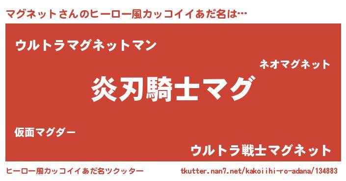 | 男性向けラノベタイトル風あだ名 | 『マグネットの嫁は女の子じゃないと思った?』 |