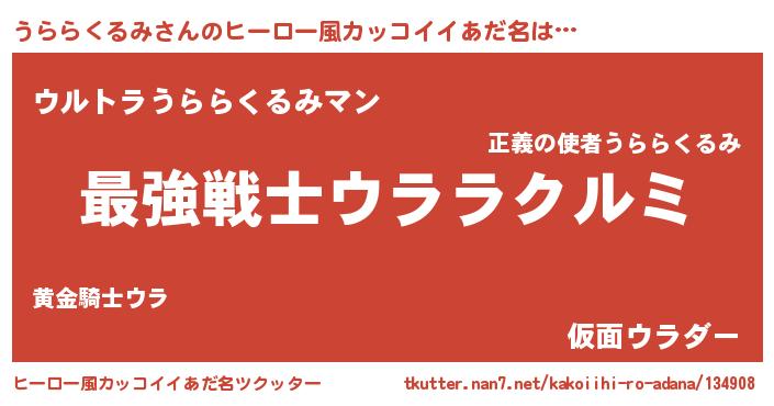 | 男性向けラノベタイトル風あだ名 | 『うららくるみ~年齢イコール彼女いない歴の魔法使い~』 |