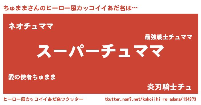 | 女子向けラノベタイトル風あだ名 | 『ちゅままの玉の輿計画!』 |