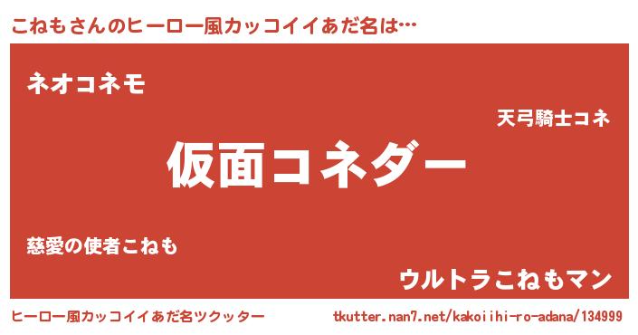 | 男性向けラノベタイトル風あだ名 | 『この素晴らしい世界にこねもを!』 |