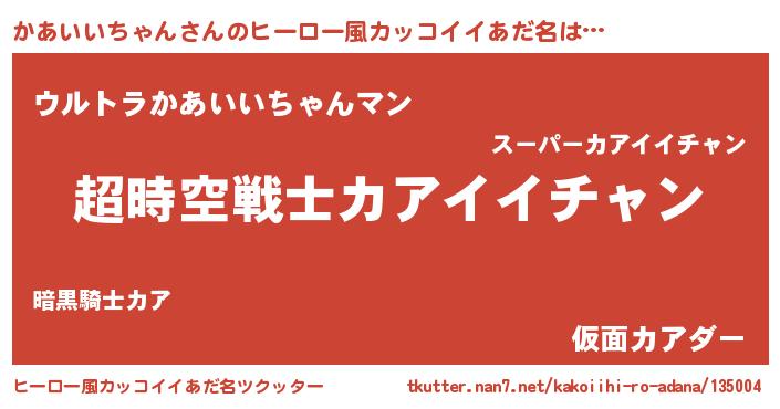 | 女子向けラノベタイトル風あだ名 | 『かあいいちゃんなんてお断りですっ。』 |