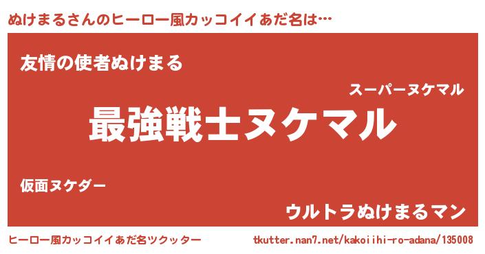| 男性向けラノベタイトル風あだ名 | 『Re:ぬけまるから始める異世界生活』 |