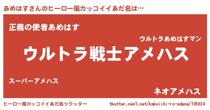 | 意味不明あだ名 | 『自称あめはす』『永久保存あめはす』 |