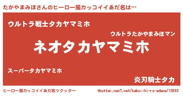 | ヘコむあだ名 | 『たかやまみほ(苦笑)』『たかっぺ』 |