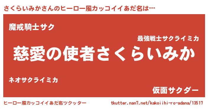 | ヘコむあだ名 | 『さくお』『さくらいみか(爆)』 |