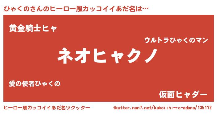| ヘコむあだ名 | 『ひゃくの(震え声)』『ひゃっ子』 |