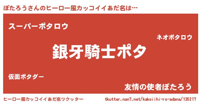 | 男性向けラノベタイトル風あだ名 | 『ぽたろうの嫁は女の子じゃないと思った?』 |