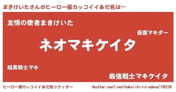 | 意味不明あだ名 | 『永久保存まきけいた』『自称まきけいた』 |