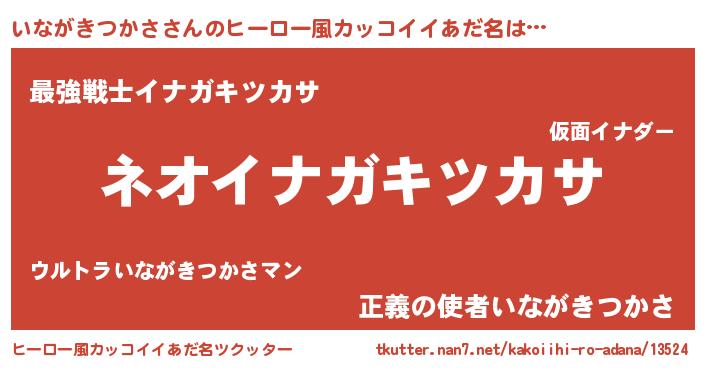 | 女子向けラノベタイトル風あだ名 | 『異世界で失敗しない100のいながきつかさ』 |