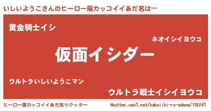 | 男性向けラノベタイトル風あだ名 | 『この素晴らしい世界にいしいようこを!』 |