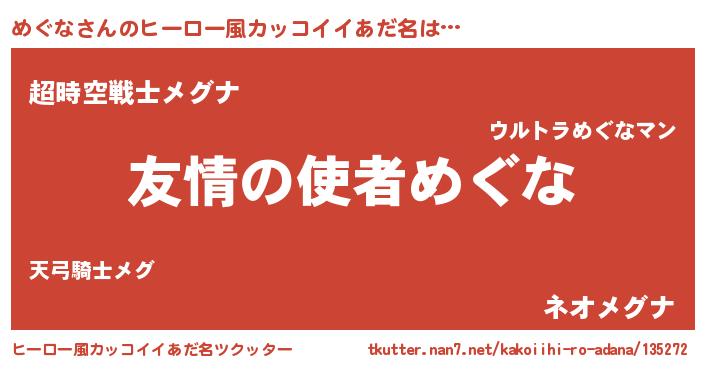 | 意味不明あだ名 | 『めかぶ科めぐな属』『自称めぐな』 |