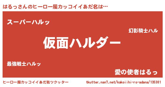 | 男性向けラノベタイトル風あだ名 | 『この素晴らしい世界にはるっを!』 |