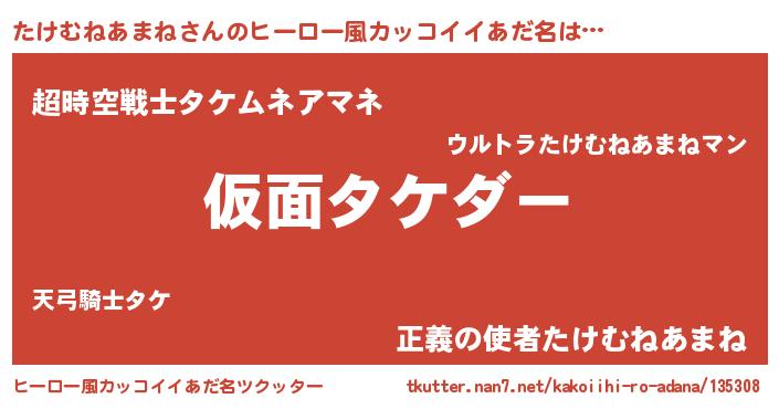 | 男性向けラノベタイトル風あだ名 | 『転生したらたけむねあまねだった件』 |