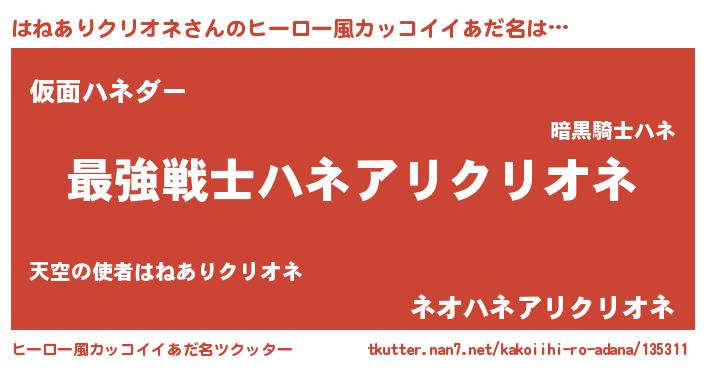 | 伝説のあだ名 | 『古文書に記された勇者はねありクリオネ』 |
