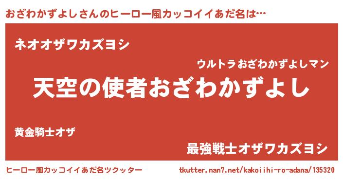 | 男性向けラノベタイトル風あだ名 | 『おざわかずよし~年齢イコール彼女いない歴の魔法使い~』 |
