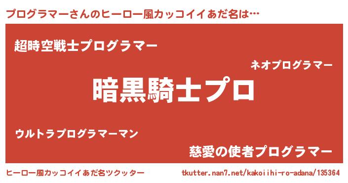 | 男性向けラノベタイトル風あだ名 | 『ダンジョンにプログラマーを求めるのは間違っているだろうか』 |