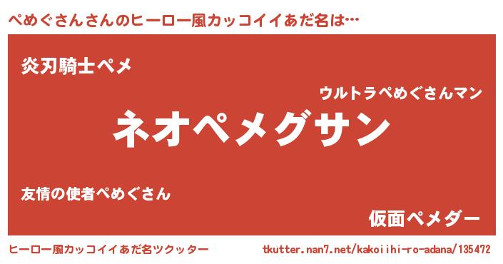 | 男性向けラノベタイトル風あだ名 | 『ペめぐさんという概念が存在しない退屈な世界 』 |