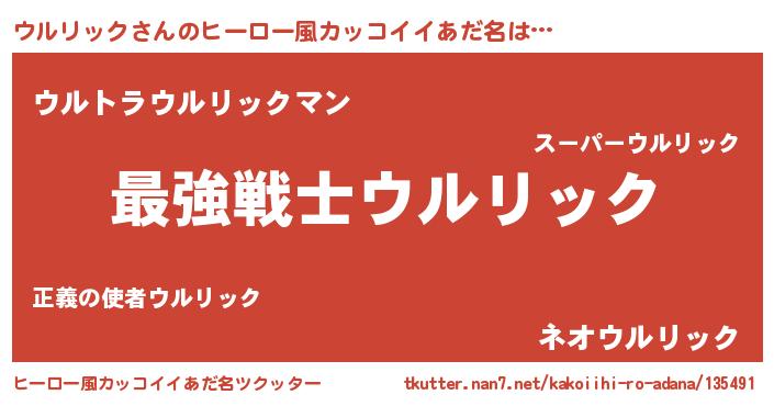 | ファンタジー風あだ名 | 『ゼウルトゥ』『エターナルウルリックー』 |