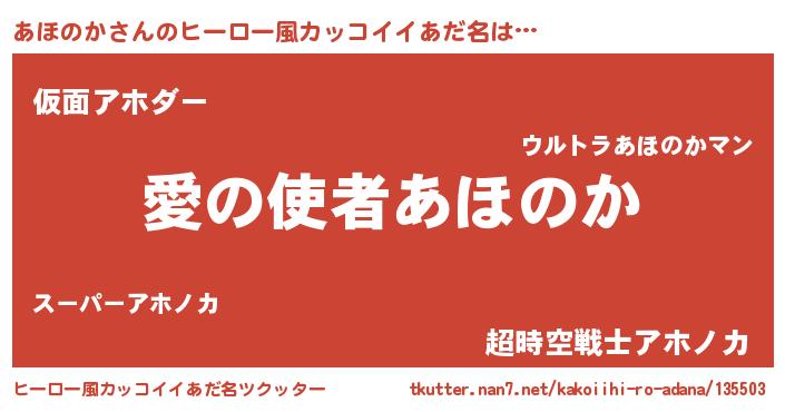 | 男性向けラノベタイトル風あだ名 | 『あほのかに滅ぼされるだけの簡単なお仕事です』 |