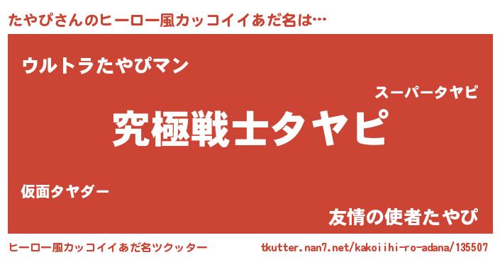 | 伝説のあだ名 | 『最強の忍者たやぴ』 |