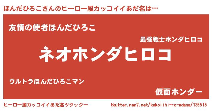 | 胡散臭い通販商品みたいなあだ名 | 『絶対に幸福をもたらす健康食品…その名も「ほんだひろこ」』 |