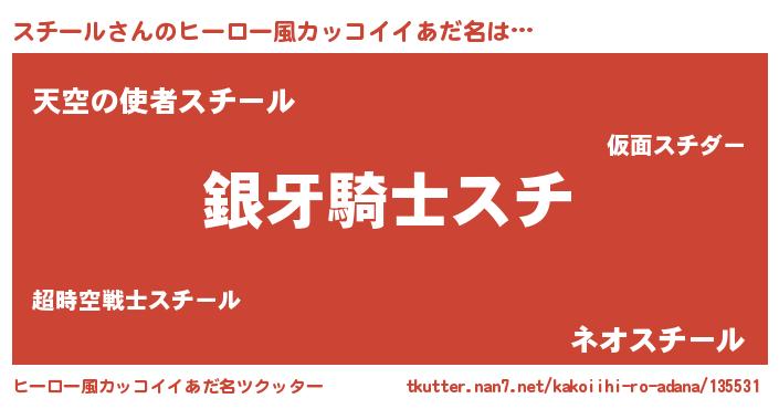 | 男性向けラノベタイトル風あだ名 | 『スチールの嫁は女の子じゃないと思った?』 |