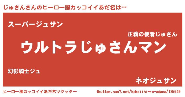 | 女子向けラノベタイトル風あだ名 | 『じゅさんの玉の輿計画!』 |