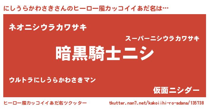| 男性向けラノベタイトル風あだ名 | 『ダンジョンににしうらかわさきを求めるのは間違っているだろうか』 |