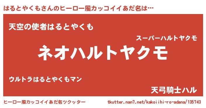 | 意味不明あだ名 | 『永久保存はるとやくも』 |