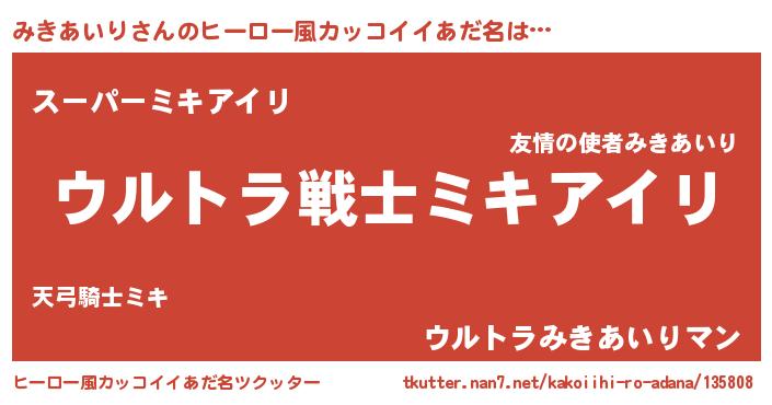 | 意味不明あだ名 | 『自称みきあいり』『ペロリンみきあいり』 |