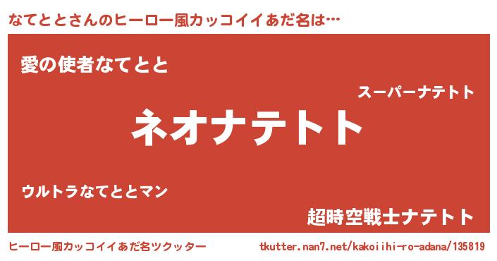 | 意味不明あだ名 | 『永久保存なてとと』『自称なてとと』 |