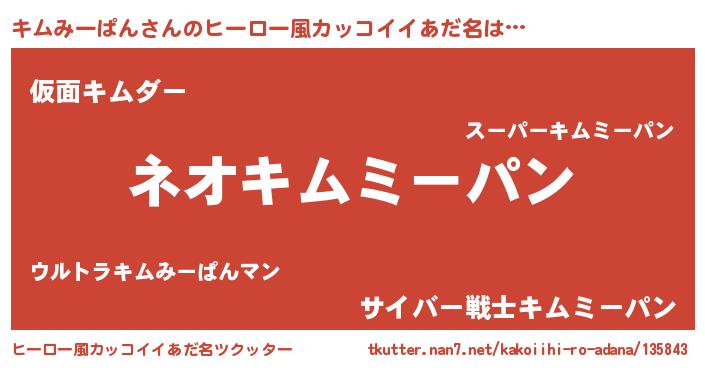 | 伝説のあだ名 | 『古文書に記された勇者キムみーぱん』 |