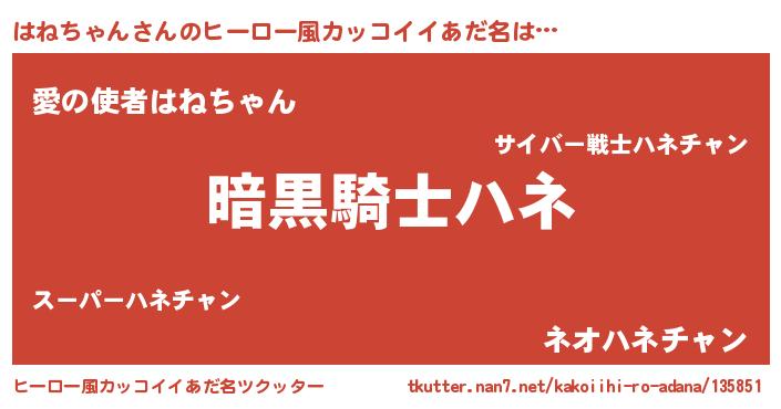はねちゃんさんのヒーロー風カッコイイあだ名をツクッター!